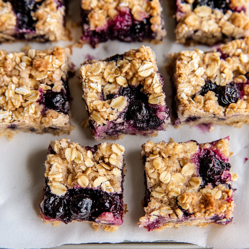 The bars are ready when they turn golden brown around the edges and the blueberries start to bubble. A toothpick inserted into the oat topping should come out clean.