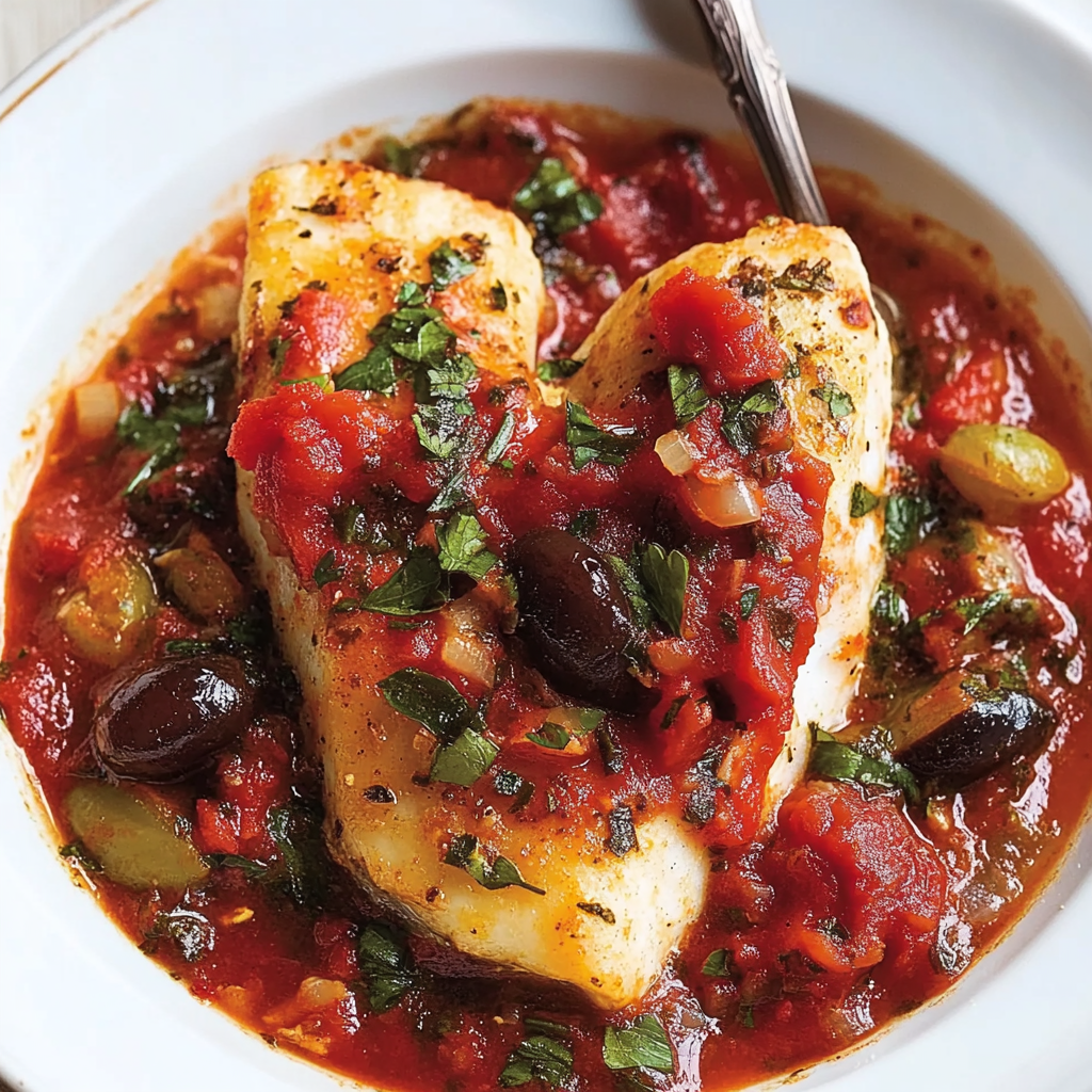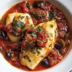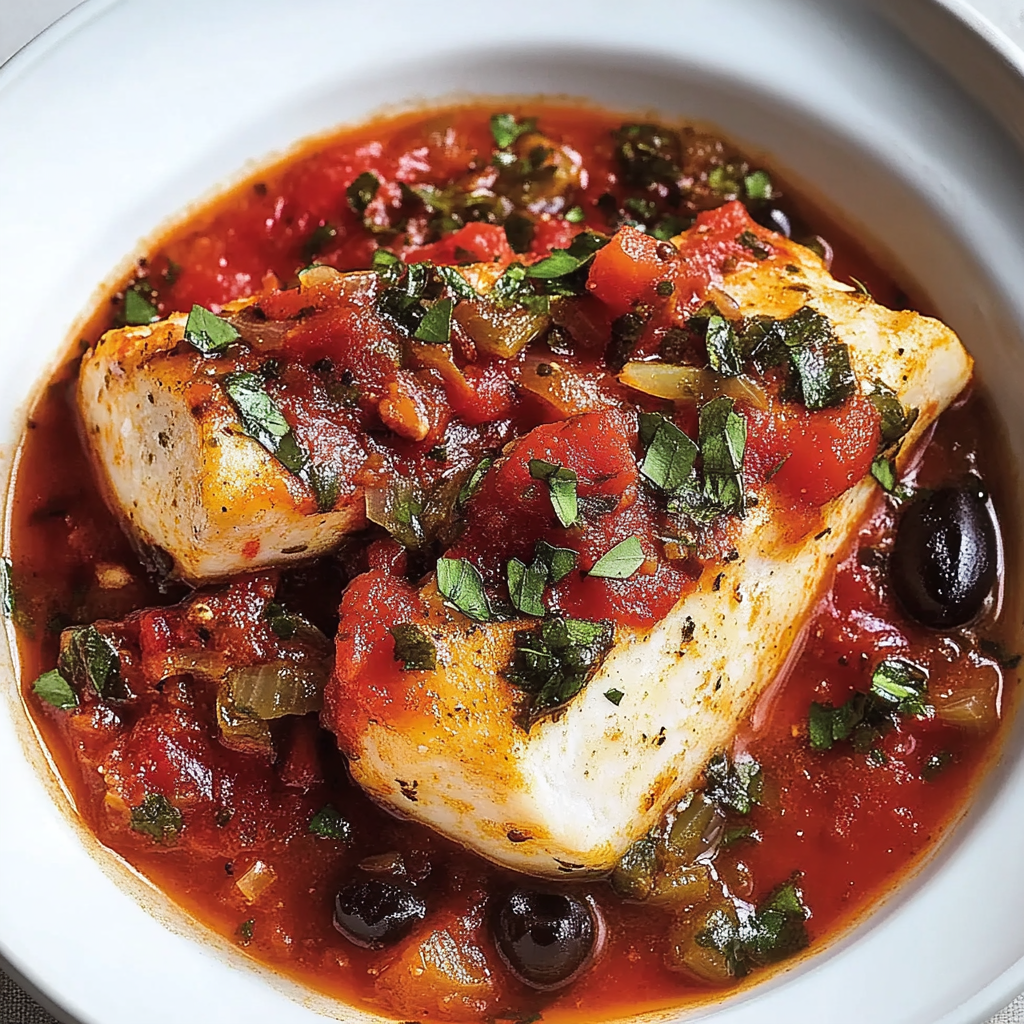 Fish Puttanesca is a savory dish featuring white fish cooked in a briny tomato sauce made with olives, capers, and aromatic herbs. It’s a simple yet flavorful take on traditional puttanesca sauce.