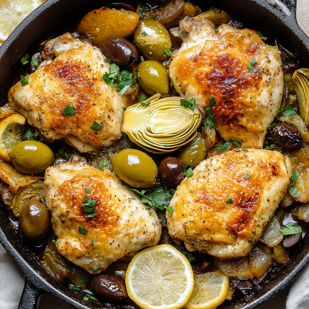 Mediterranean Lemon Chicken with Artichokes & Olives