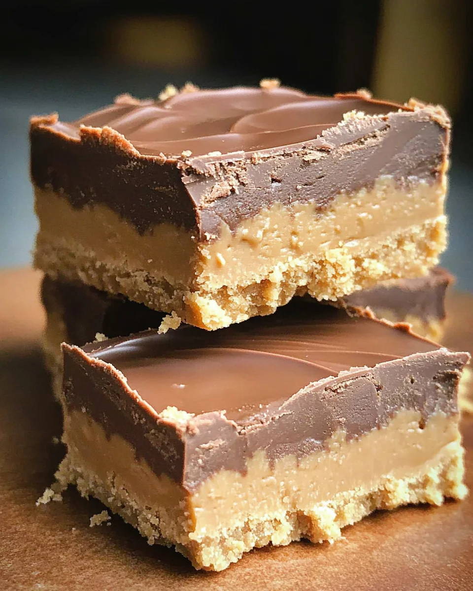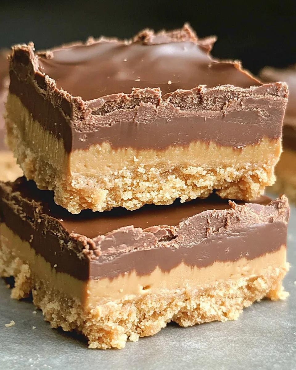 Reese’s Peanut Butter Bars are no-bake dessert bars made with a sweet peanut butter cookie base topped with creamy chocolate. They mimic the flavors of classic Reese’s Peanut Butter Cups.